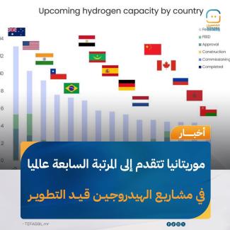 موريتانيا تتقدم إلى المرتبة السابعة عالميا في مشاريع الهيدروجين قيد التطوير