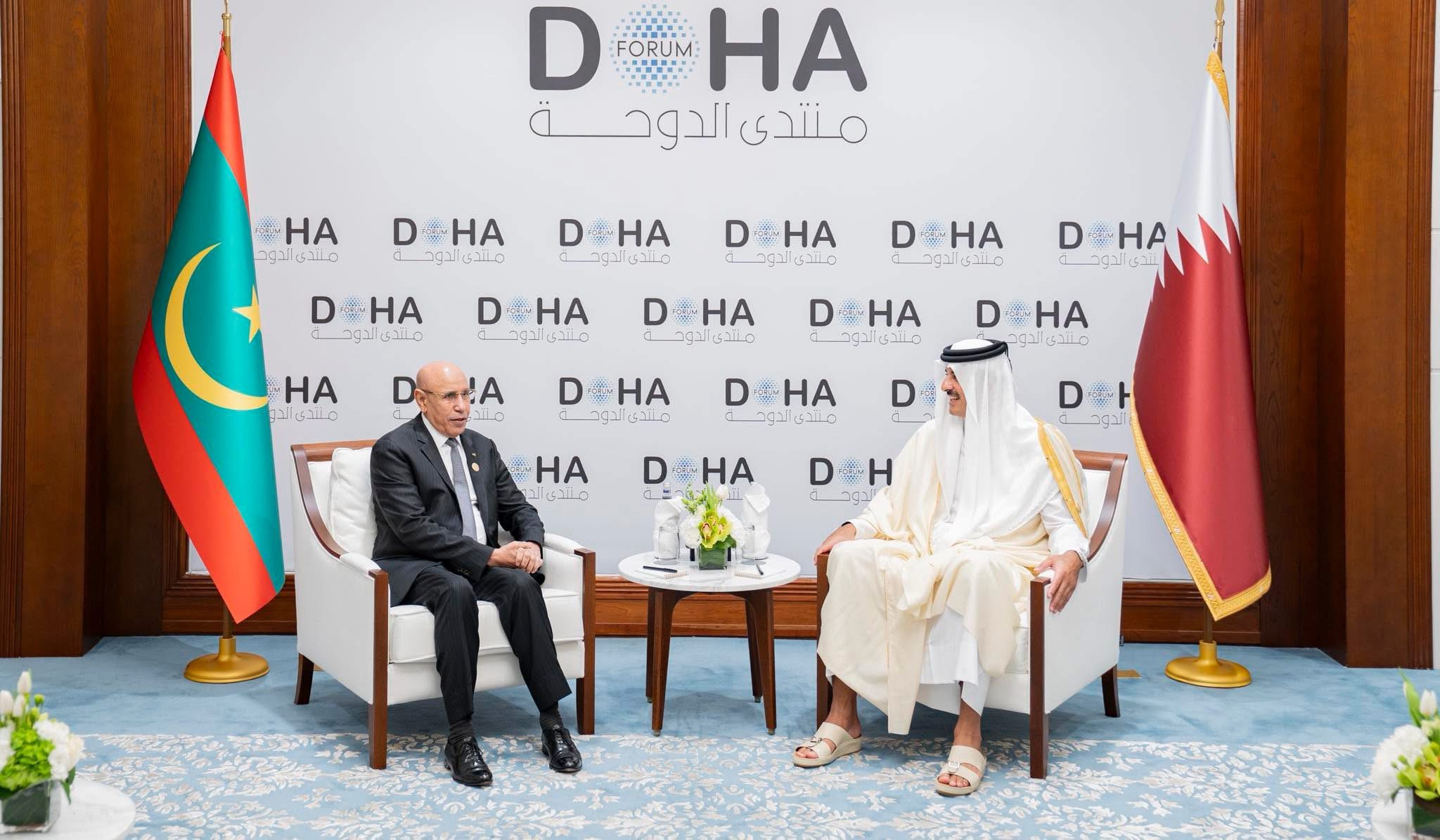 Dec 06 / التعليقات مباحثات بين الرئيس غزواني وأمير قطر في الدوحة أجرى الرئيس محمد ولد الشيخ الغزواني، اليوم السبت، في الدوحة، مباحثات مع أمير قطر تميم بن حمد آل ثاني.جاء ذلك على هامش مشاركة الرئيس غزواني في فعاليات منتدى الدوحة 2025.وكان الرئيس غزواني قد وصل إلى الدوحة، أمس الجمعة، للمشاركة في المنتدى. سبت, 2025/12/06 - 11:23