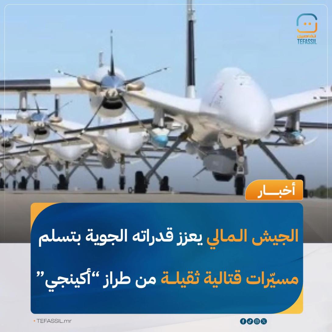 تسلّم الجيش المالي دفعة جديدة من الطائرات المسيّرة القتالية الثقيلة من طراز "أكينجي"، وذلك خلال مراسم أُقيمت في القاعدة الجوية رقم 200 بمدينة سيفاري، في خطوة تهدف إلى تعزيز القدرات الجوية للقوات المسلحة.