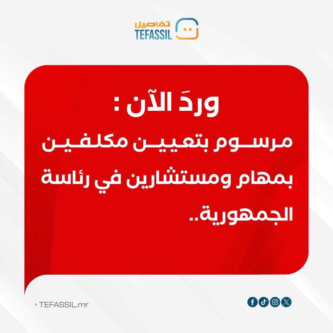 أعلنت رئاسة الجمهورية أنه، بموجب مرسوم صادر اليوم، تم تعيين عدد من المكلفين بمهام والمستشارين برئاسة الجمهورية.