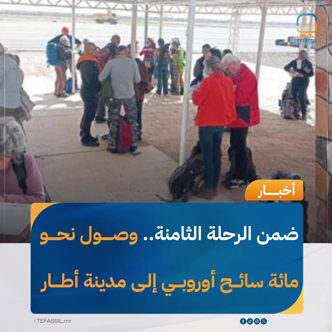 وصلت -اليوم السبت- إلى مطار أطار الدولي الرحلة السياحية الثامنة، قادمة من فرنسا، وعلى متنها 94 سائحا أوروبيا.