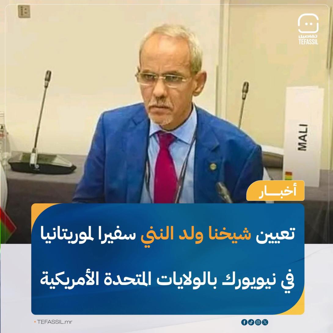 Feb 20 / التعليقات تعيين ولد النني سفيرا لموربتانيا في نيويورك بالولايات المتحدة الأمربكية علمت تفاصيل من مصادر رسمية بتعيين السفير شيخنا ولد النني سفيرًا للجمهورية الإسلامية الموريتانية في نيويورك بالولايات المتحدة الأمريكية. جمعة, 2026/02/20 - 16:01