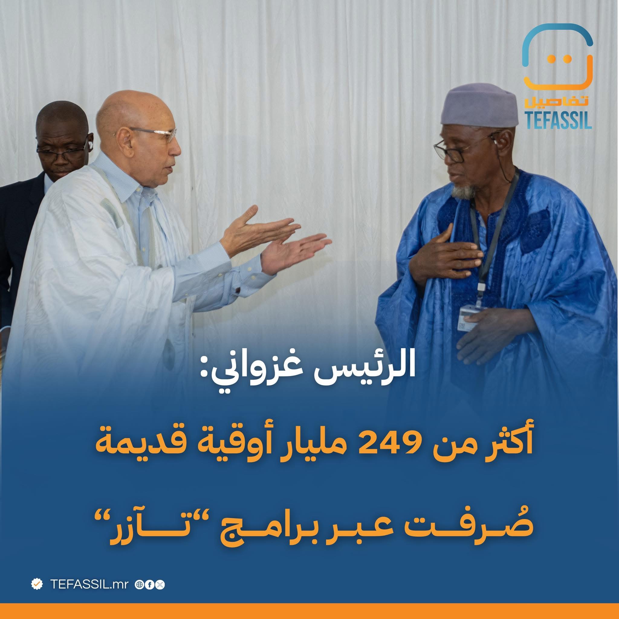 وأوضح الرئيس غزواني، في كلمة ألقاها مساء اليوم أمام مجتمع التآزر، أن الاستثمارات الموجهة للبرامج الاجتماعية خلال الفترة 2020–2025 تجاوزت 249 مليار أوقية قديمة، وشملت قطاعات التعليم والصحة والمياه والطاقة والسكن والإدماج الاقتصادي.