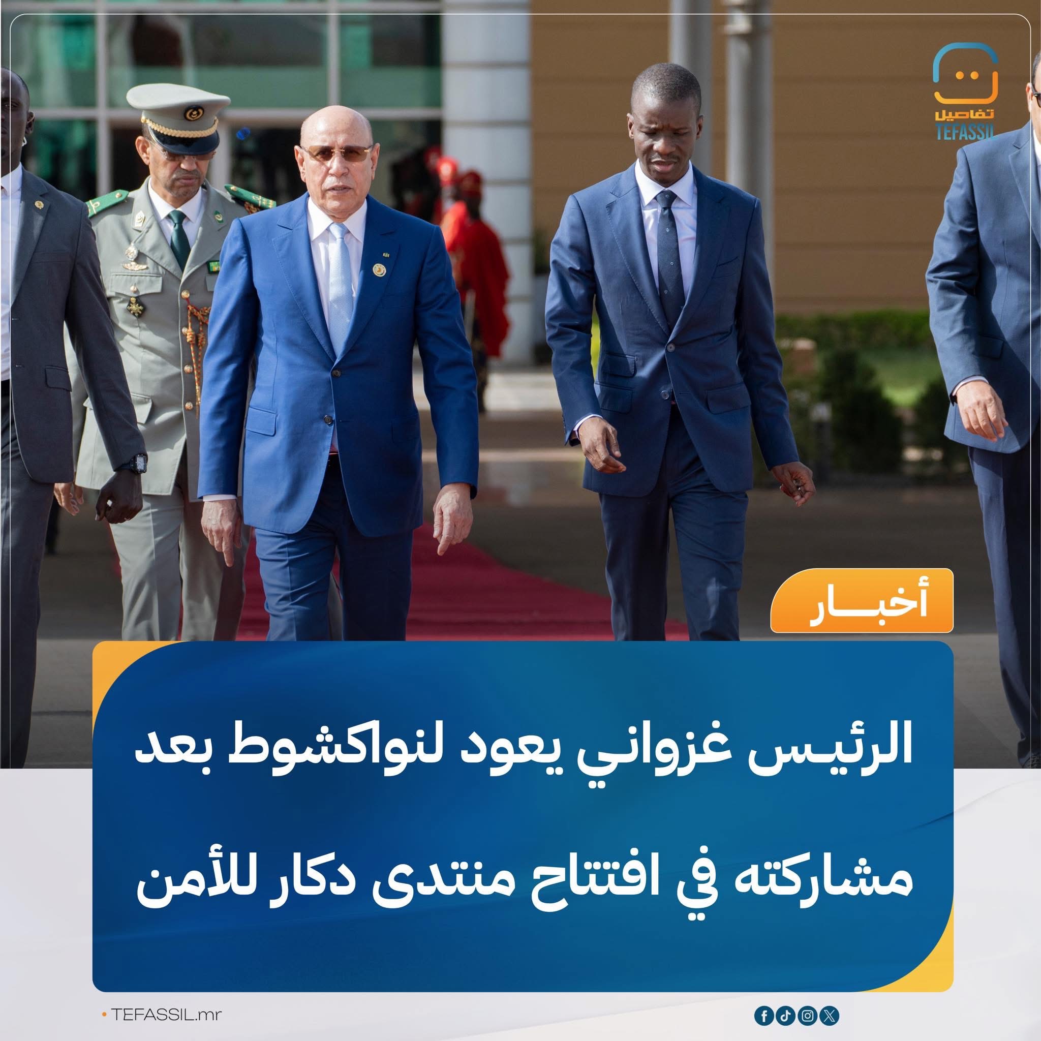 أجرى رئيس الجمهورية محمد ولد الشيخ الغزواني سلسلة لقاءات ثنائية على هامش منتدى دكار الدولي للسلام والأمن في إفريقيا المنعقد في داكار.