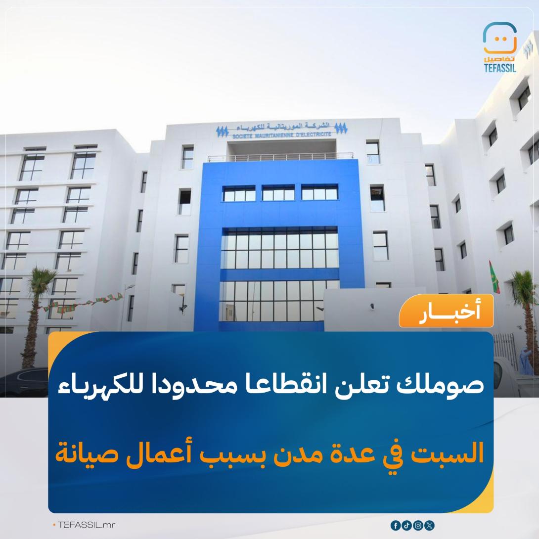أعلنت مجموعة صوملك أن انقطاعًا محدودًا للتيار الكهربائي سيشمل يوم السبت 25 أبريل 2026 مدن كيهيدي، بوكي، مقطع لحجار، آلاك، بوتلميت، إضافة إلى القرى الواقعة على طول المحور المعني، وذلك من الساعة 07:00 صباحًا إلى 08:00 صباحًا.