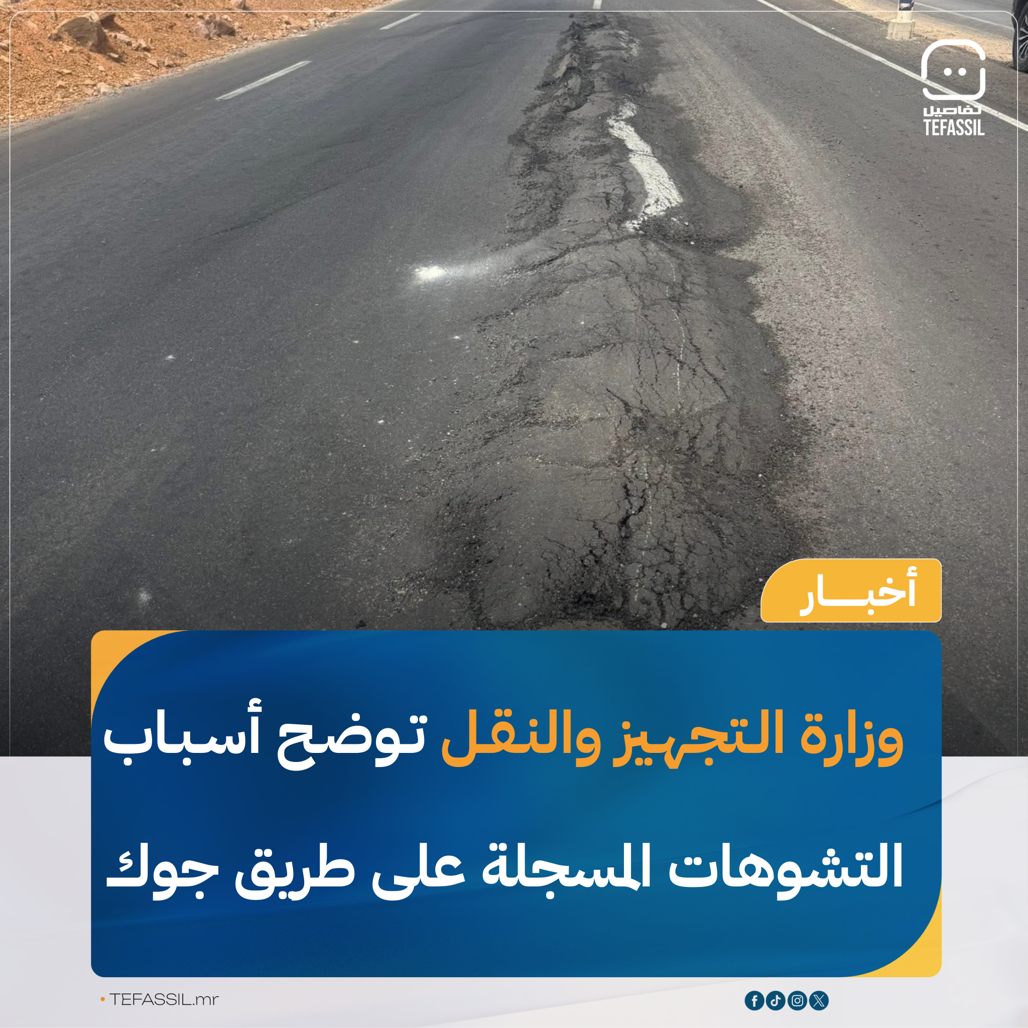 وأكدت الوزارة أنه جرى تكليف المختبر الوطني للأشغال العمومية بإجراء دراسة فنية معمقة لتحديد أسباب هذه التشوهات بدقة، واقتراح حلول تقنية كفيلة بضمان استدامة الطريق وقدرته على تحمل ضغط الحمولة وكثرة استخدام المكابح من قبل الشاحنات.
