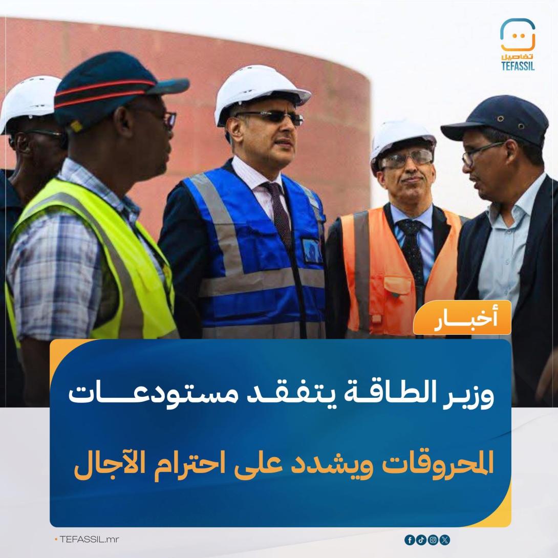تفقد وزير الطاقة والنفط محمد ولد خالد، مساء أمس، أشغال بناء مستودعات المحروقات قرب ميناء نواكشوط، للوقوف على مستوى تقدم المشروع.