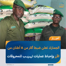 الجمارك تعلن إحباط تهريب أكثر من 8 أطنان من الأرز