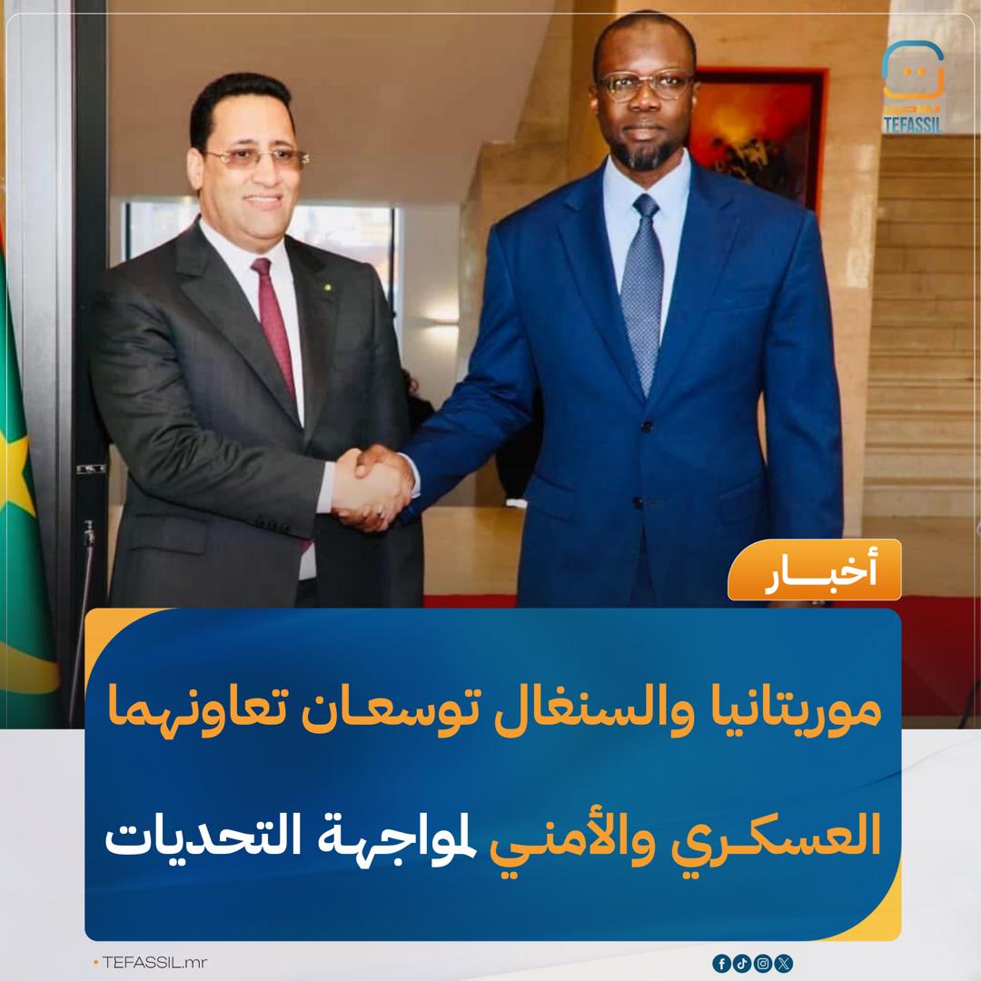 أعلنت موريتانيا والسنغال، الخميس، توسيع تعاونهما العسكري والأمني لمواجهة التحديات المشتركة، مع الالتزام بالتنفيذ الكامل لاتفاقية دخول وإقامة مواطني البلدين قبل نهاية فبراير المقبل، وذلك في إطار تعزيز العلاقات الثنائية.