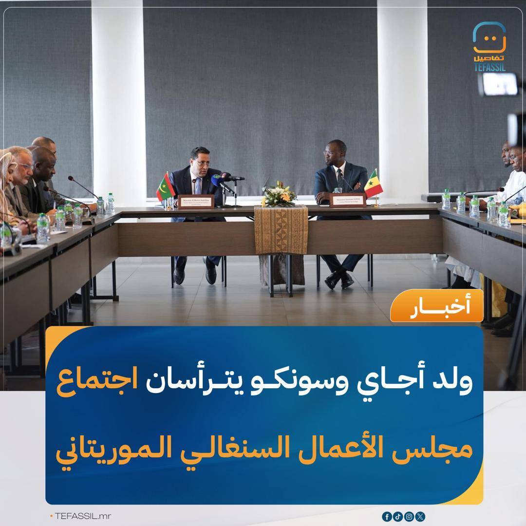 ترأس الوزير الأول المختار ولد اجاي، رفقة نظيره السنغالي عثمان سونكو، اجتماعا بدكار لمجلس الأعمال السنغالي الموريتاني وبحضور وكالتي الاستثمار في البلدين، وذلك لتعزيز التعاون الاقتصادي وتشجيع الاستثمارات المشتركة بين موريتانيا والسنغال.