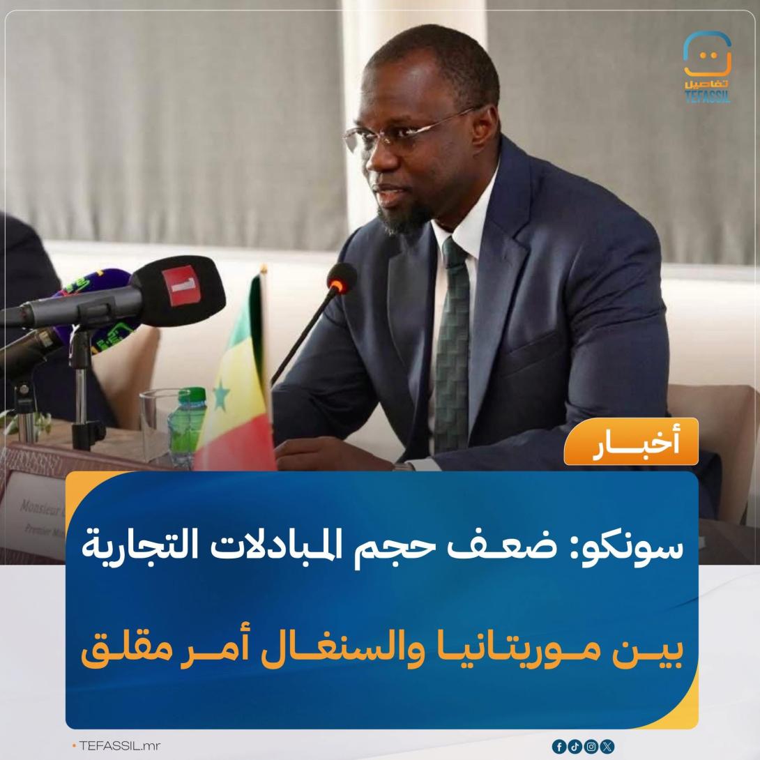 قال الوزير الأول السنغالي، عثمان سونكو، إن حجم التبادل التجاري بين موريتانيا والسنغال لا يزال ضعيفًا وبشكل "مقلق"، إذ لم يتجاوز سنة 2024 نحو 65 مليار فرنك إفريقي.