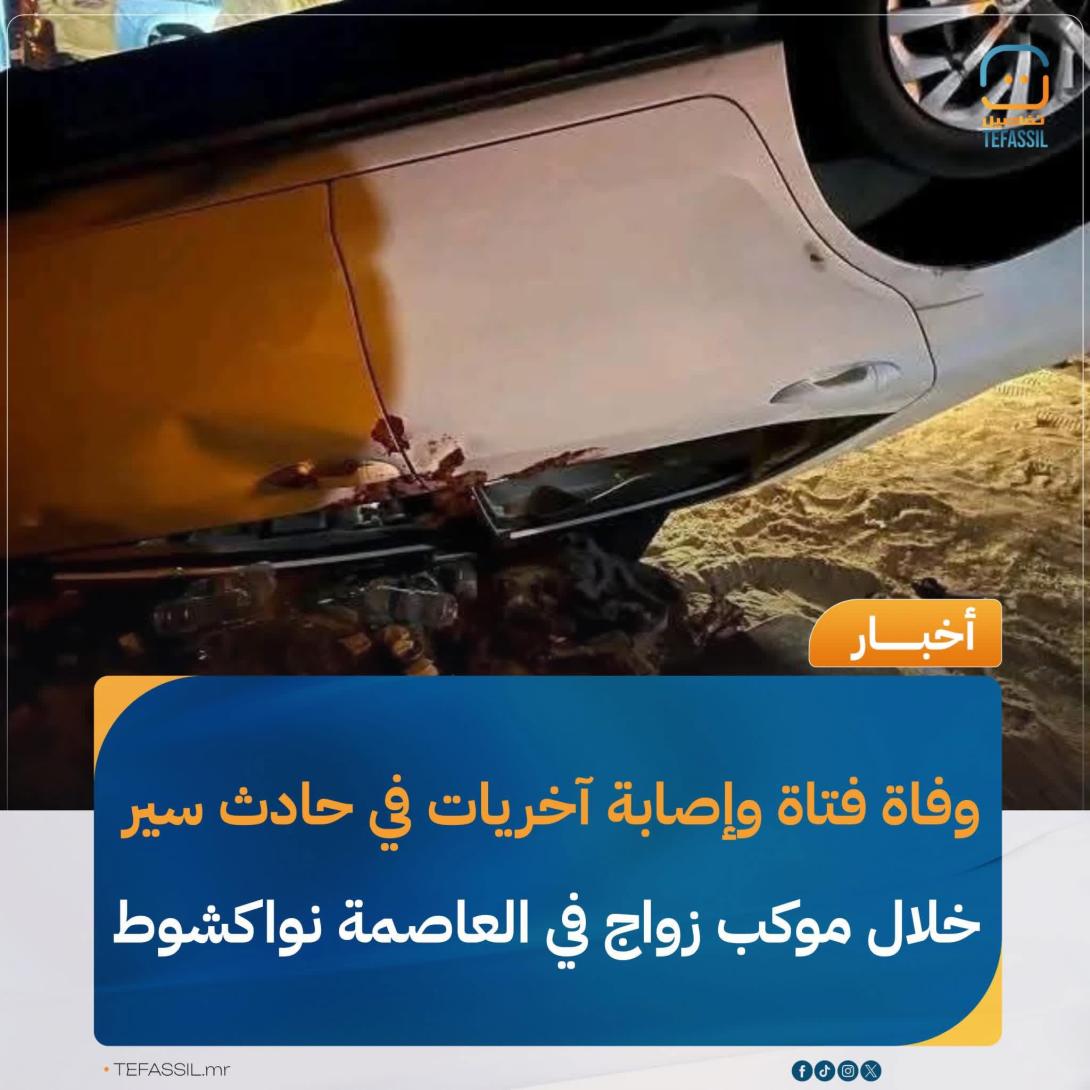لقيت فتاة مصرعها وأصيبت أخريات، مساء الأحد، في حادث سير وُصف بـ "المروع"، وقع أثناء موكب زواج في العاصمة نواكشوط.