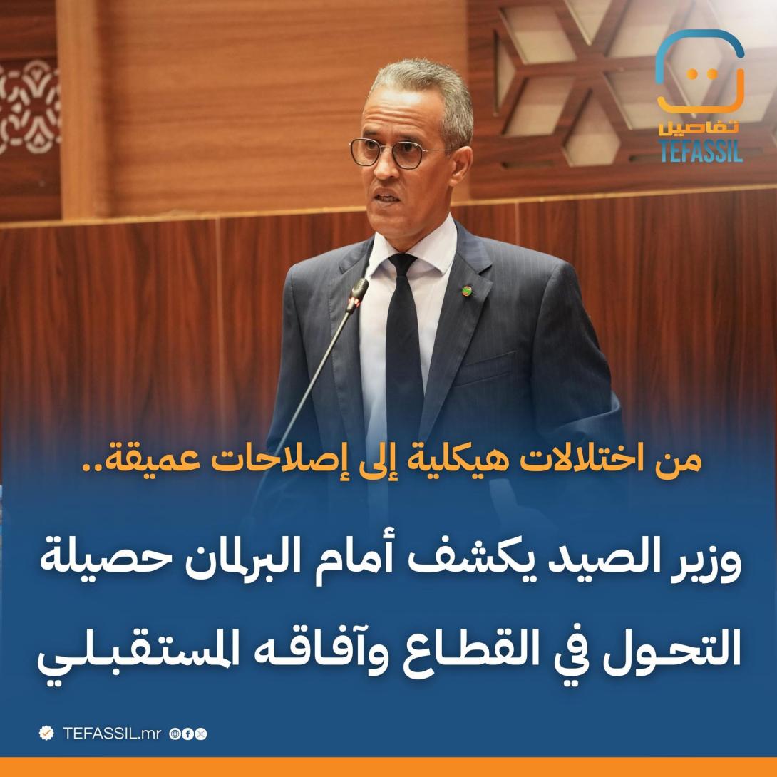 قدم وزير الصيد والبنى التحتية البحرية والمينائية المختار أحمد بوسيف، أمس الخميس 15 يناير 2026، عرضا مفصلا أمام البرلمان ردا على سؤال شفهي تقدمت به النائب عزة جدو، استعرض فيه واقع القطاع خلال السنوات الماضية، والإصلاحات التي تم تنفيذها، والآفاق المستقبلية لتطوير الصيد البحري والبنى التحتية المينائية.