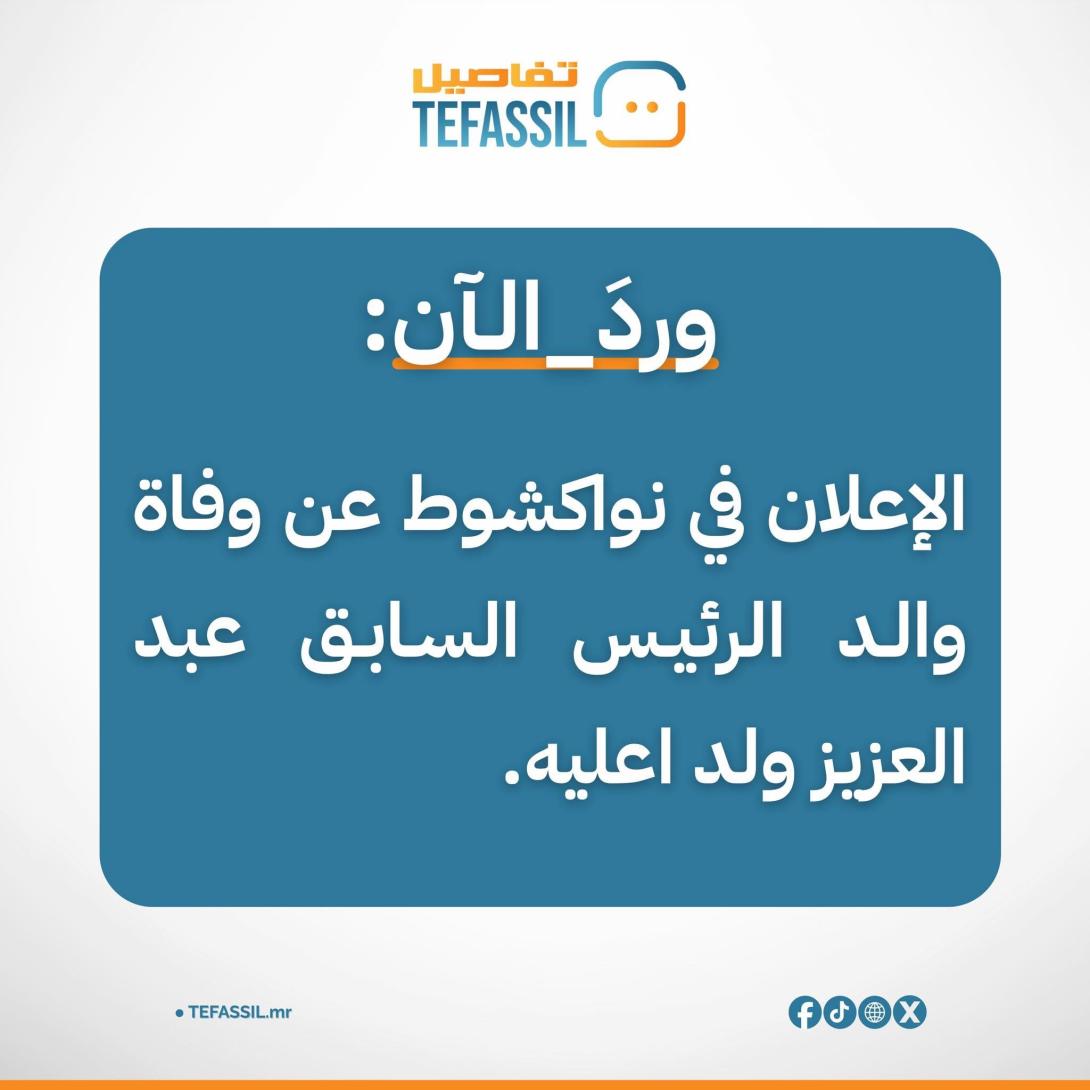 وأكد المحامي عبد الرحمن ولد زروق خبر الوفاة في تدوينة على صفحته على فيسبوك، كتب فيها: “والد الرئيس السابق محمد ولد عبد العزيز في ذمة الله، حسبنا الله ونعم الوكيل”.