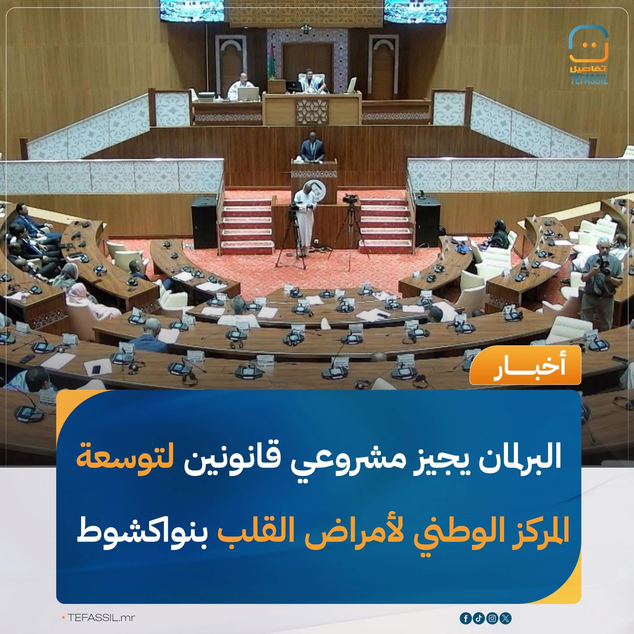 صادقت الجمعية الوطنية، اليوم الثلاثاء، على مشروعي قانونين يجيزان اتفاقيتي تمويل موقعتين بين الحكومة الموريتانية والبنك الإسلامي للتنمية، لتمويل مشاريع توسعة المركز الوطني لأمراض القلب في نواكشوط.
