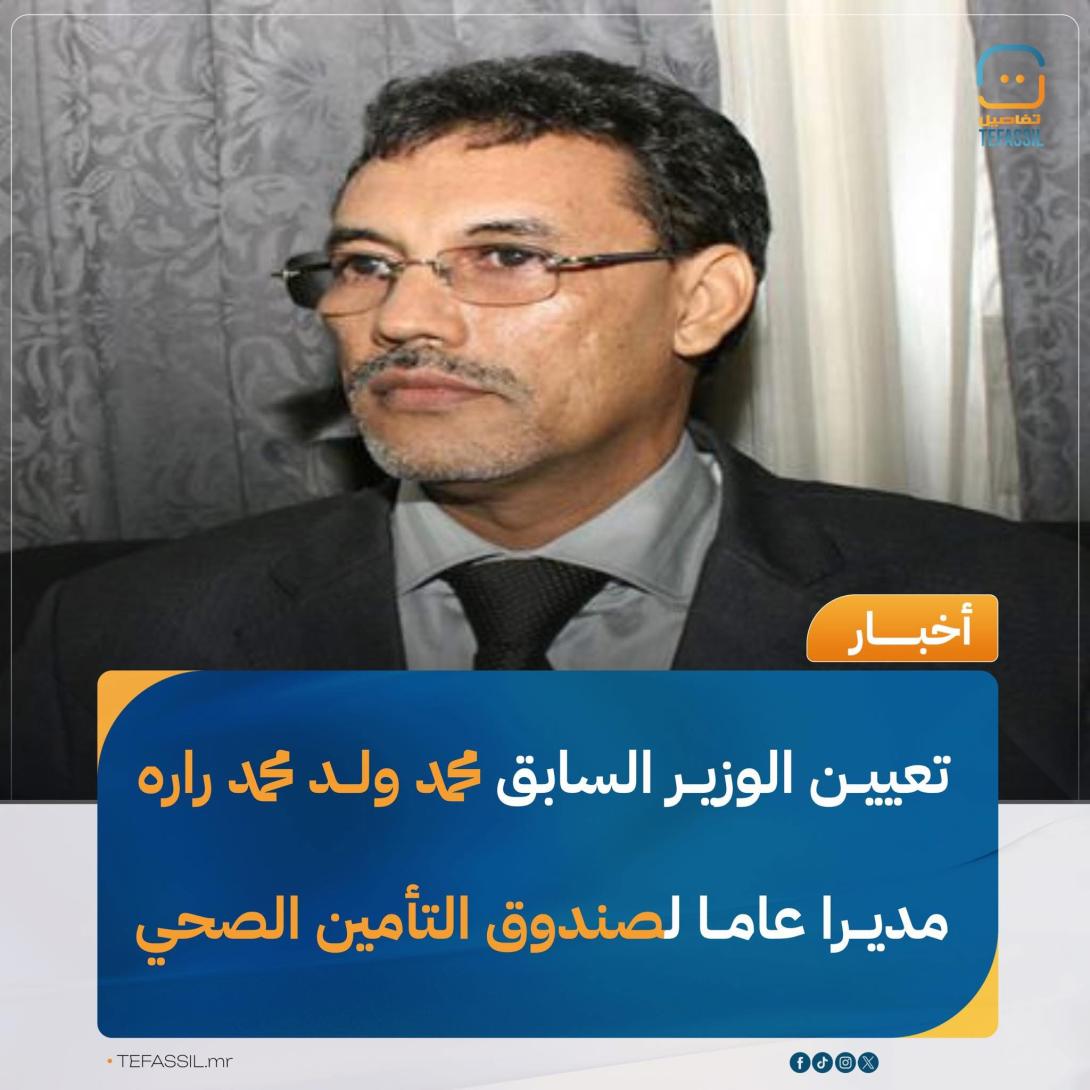 Jan 21 / التعليقات تعيين ولد محمد راره مديرا عاما لصندوق التأمين الصحي صادق مجلس الوزراء، خلال اجتماعه اليوم، على تعيين الوزير السابق محمد ولد محمد راره مديرا عاما للصندوق الوطني للتأمين الصحي، ضمن سلسلة التعيينات التي شملها الاجتماع. أربعاء, 2026/01/21 - 15:26