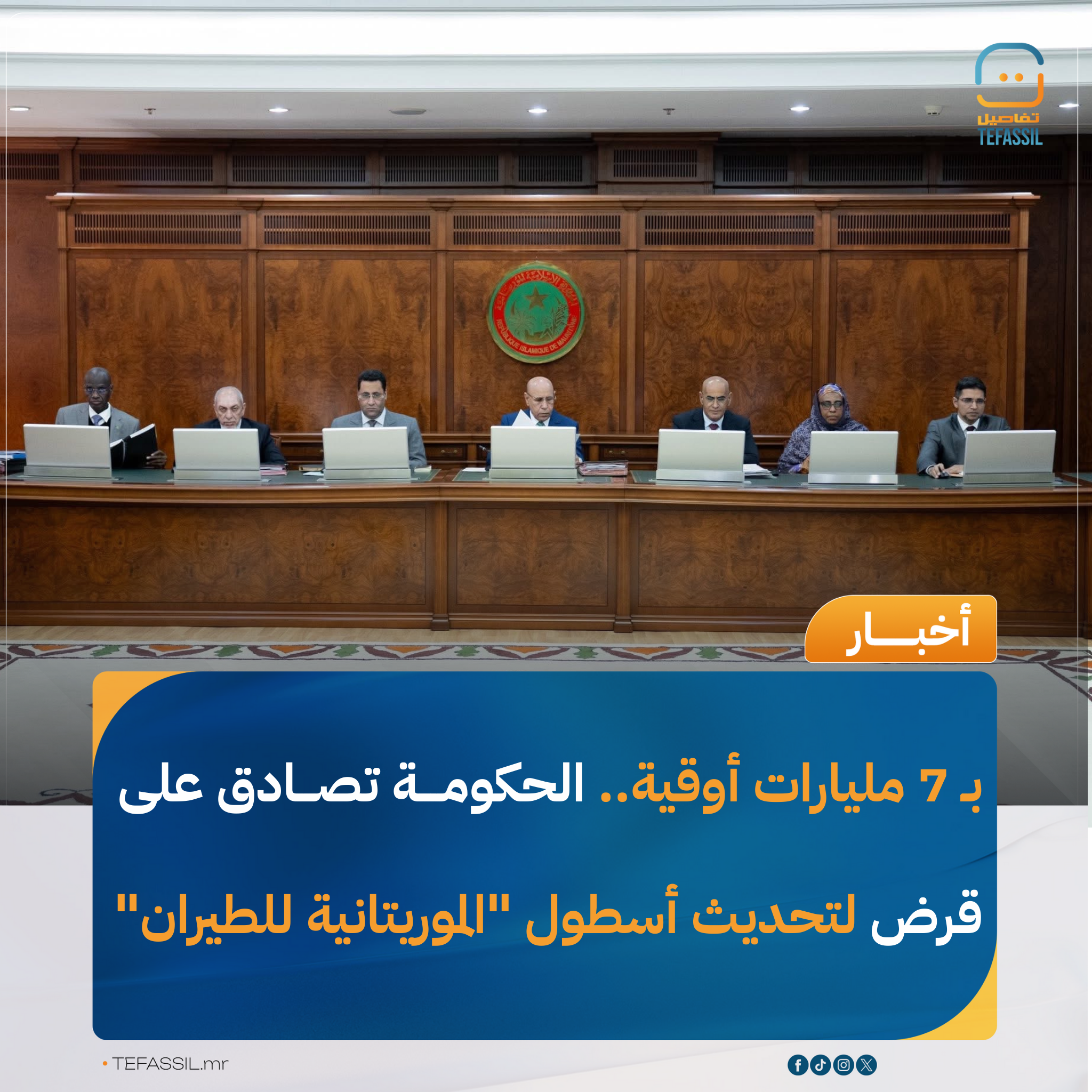 وأضاف البيان: "يستجيب مشروع هذا المرسوم لحاجة استراتيجية، من خلال تمكين الشركة الموريتانية للطيران من تعزيز قدراتها التشغيلية وضمان استمرارية خدمة النقل الجوي العمومي".