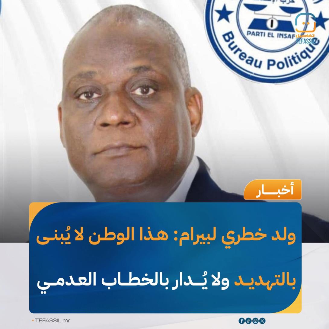 وأكد ولد خطري أن الإصلاح لا يتم بالتشهير ولا بالانفعالات، بل عبر المؤسسات المستقلة والقضاء والمحاسبة وفق القانون، مشددًا على أن المعارضة حق مشروع، لكن التحريض وتقويض الثقة في الدولة خط أحمر.