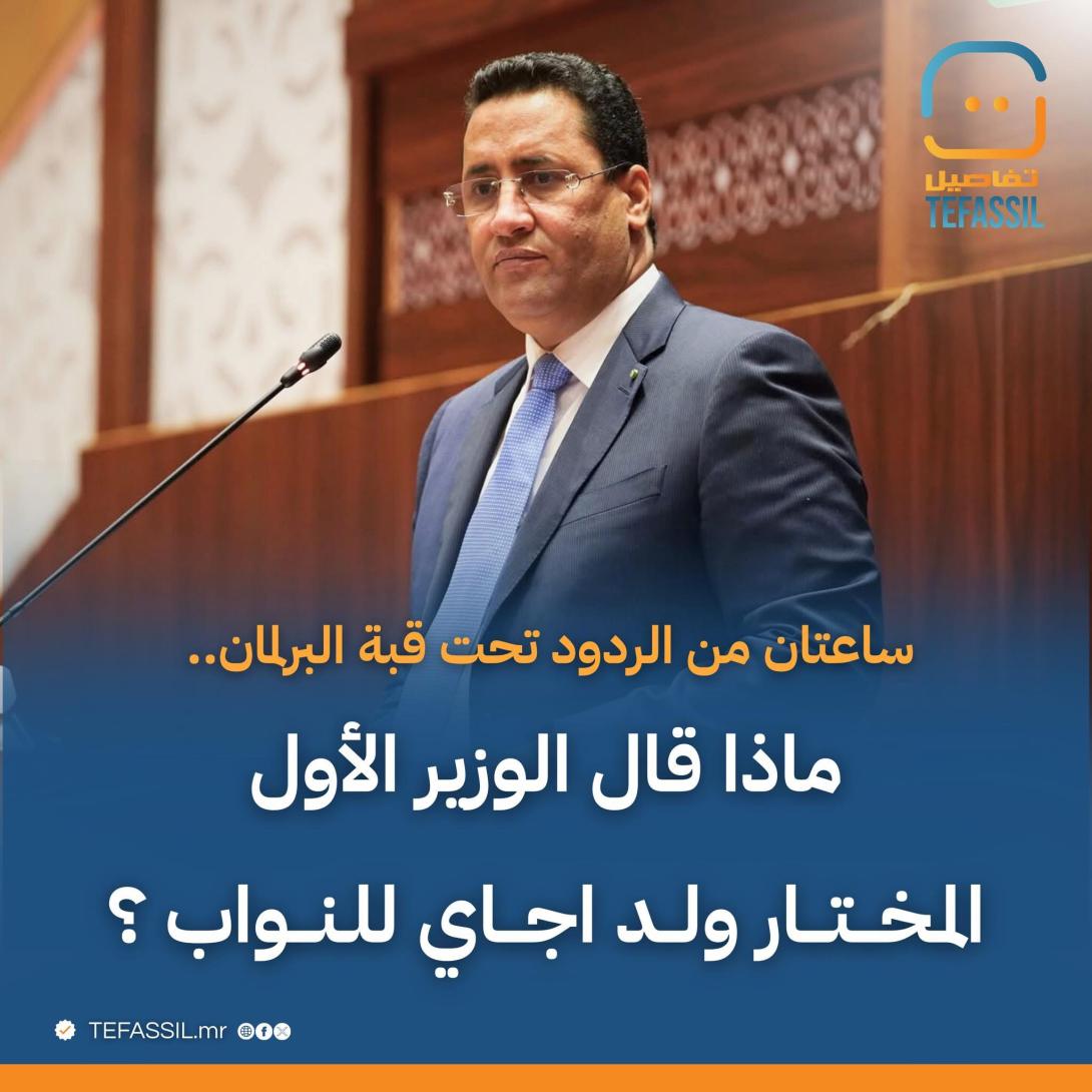 قدم الوزير الأول السيد المختار ولد اجاي، ليل السبت/الأحد، ردوده على مداخلات النواب خلال جلسة مناقشة حصيلة عمل الحكومة لسنة 2025 وآفاق برنامجها لسنة 2026، وذلك بعد يوم برلماني طويل انطلقت جلساته عند الساعة العاشرة صباحا، واختتمت قرابة الواحدة ليلا.