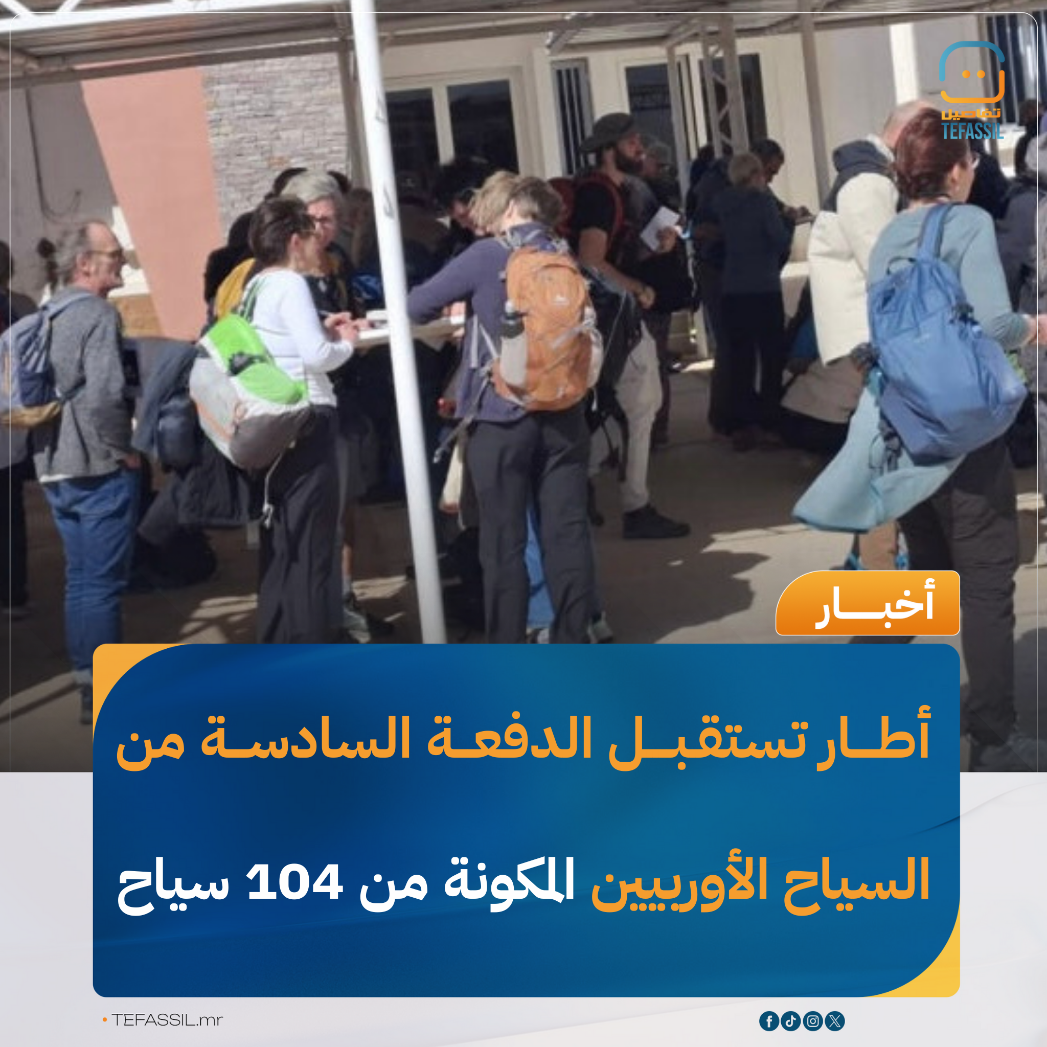 وأكد المندوب الجهوي للمكتب الوطني للسياحة الشيخ ماء العينين ولد الشيخ سعد بوه، أن عدد السياح القادمين على متن هذه الرحلة بلغ 104 سياح من جنسيات أوروبية مختلفة.