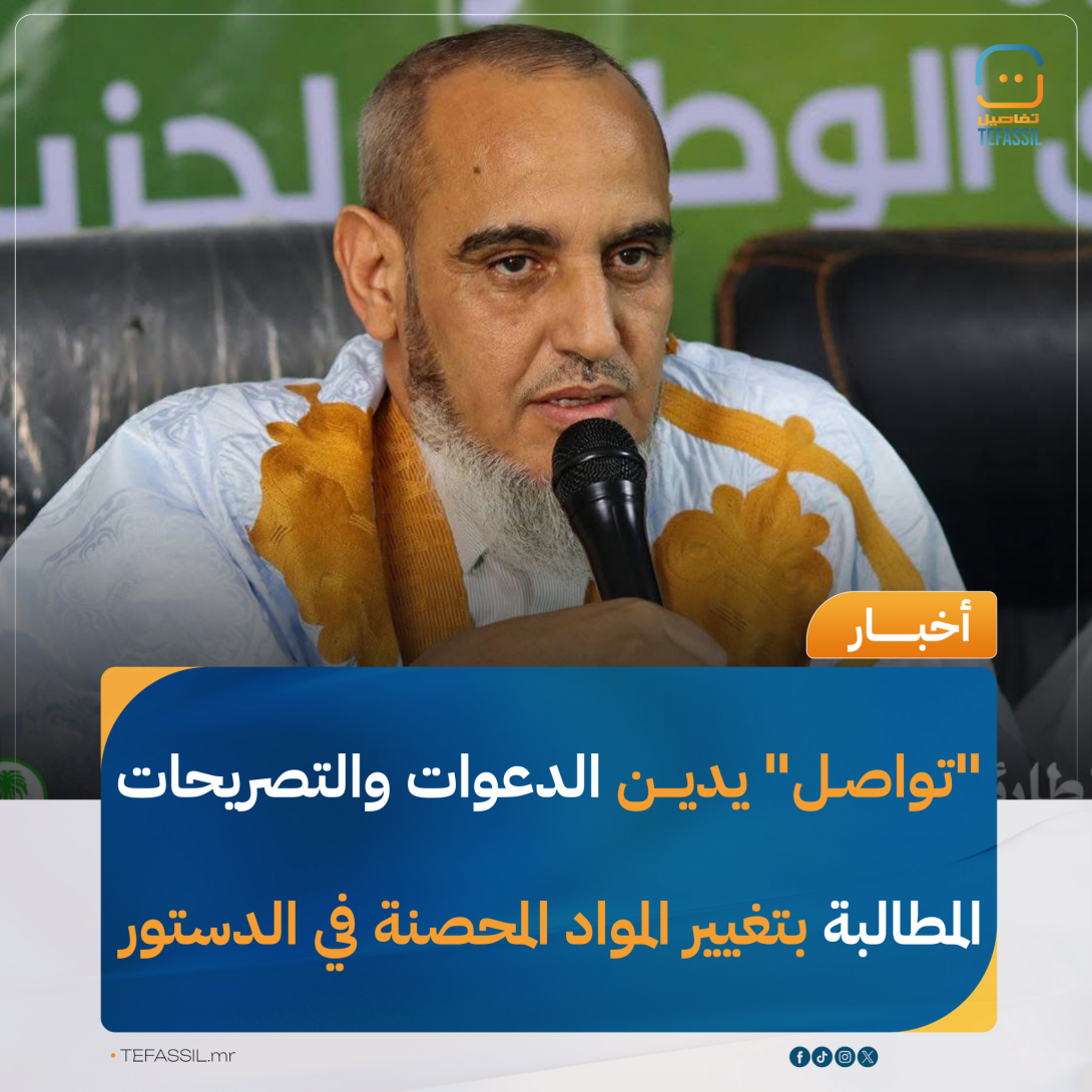 دان حزب التجمع الوطني للإصلاح والتنمية "تواصل"، الدعوات والتصريحات الصادرة من بعض قادة ونشطاء حزب الإنصاف بخصوص تغيير المواد المحصنة في الدستور.