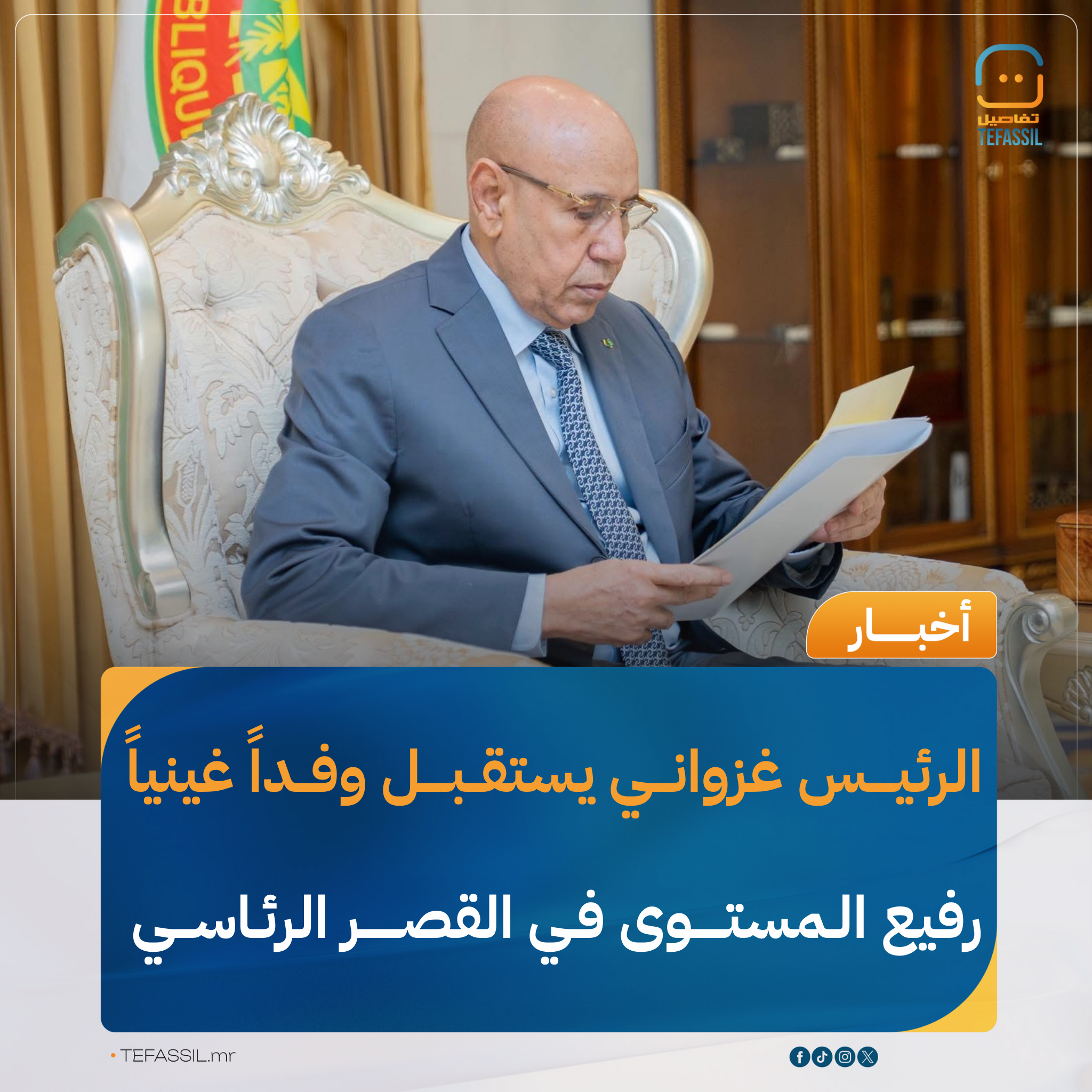 استقبل الرئيس محمد ولد الشيخ الغزواني، اليوم الاثنين، وفدا غينيا رفيع المستوى.