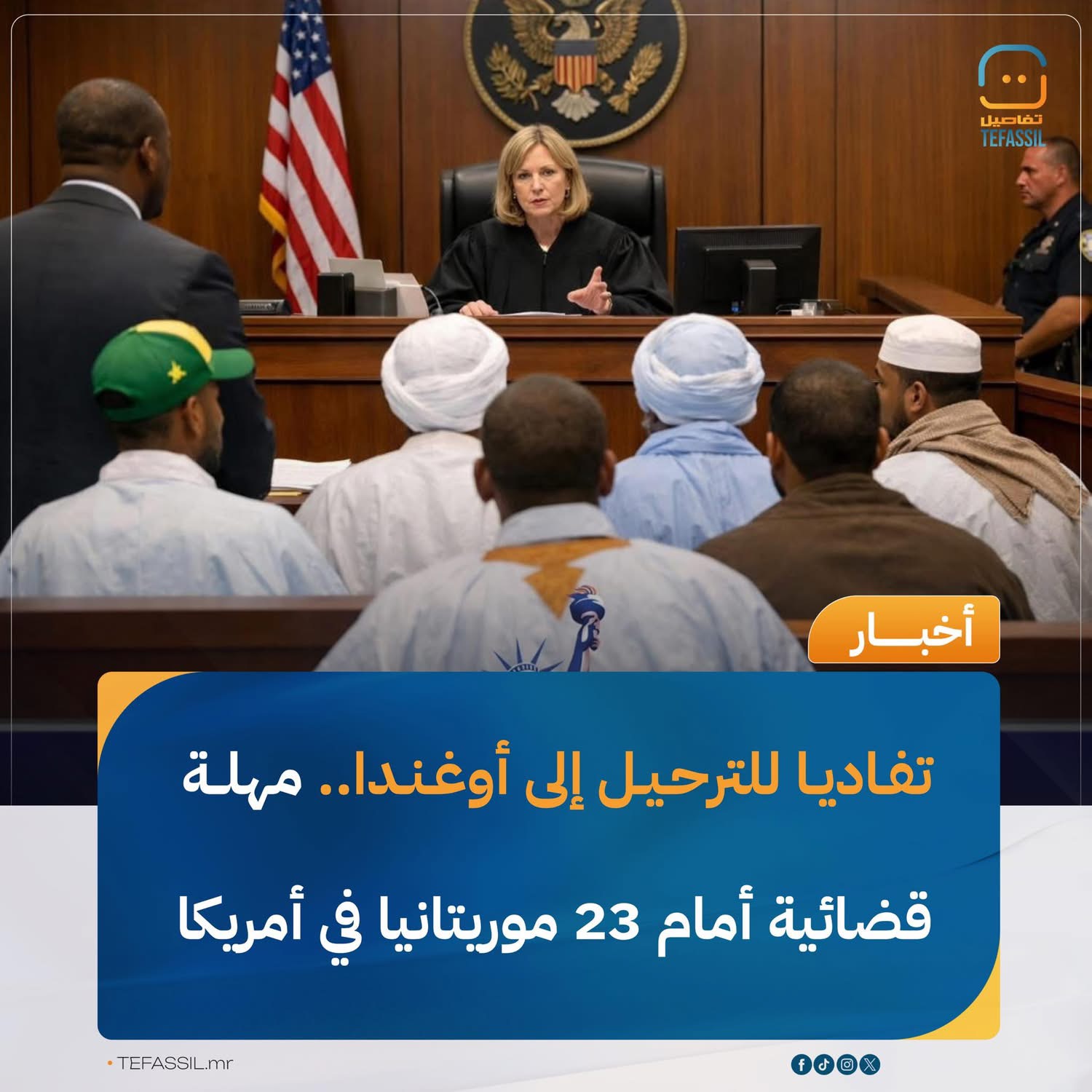 منحت قاضية فيدرالية في الولايات المتحدة الأمريكية، 23 طالب لجوء موريتانيا مهلة تسعة أيام لتقديم أدلة ودفوع قانونية كافية، في محاولة لوقف إجراءات ترحيلهم القسري إلى أوغندا.