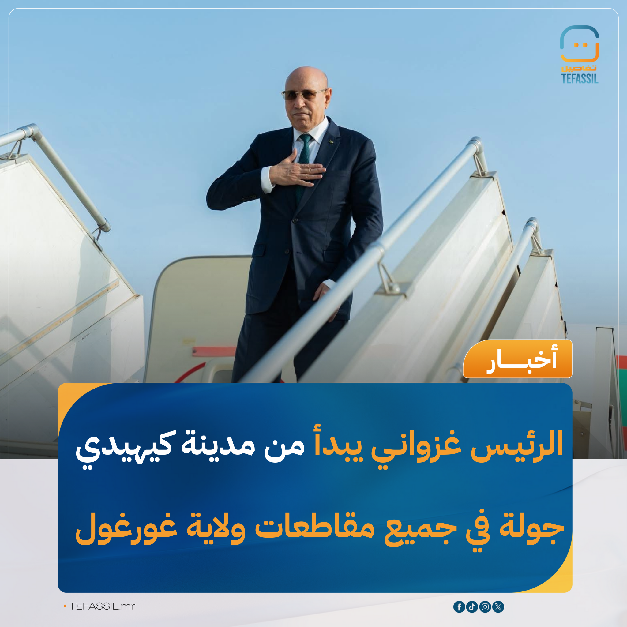 توجه الرئيس محمد ولد الشيخ الغزواني، اليوم الأحد، إلى مدينة كيهيدي، في مستهل جولة في ولاية غورغول، تشمل جميع مقاطعاتها.