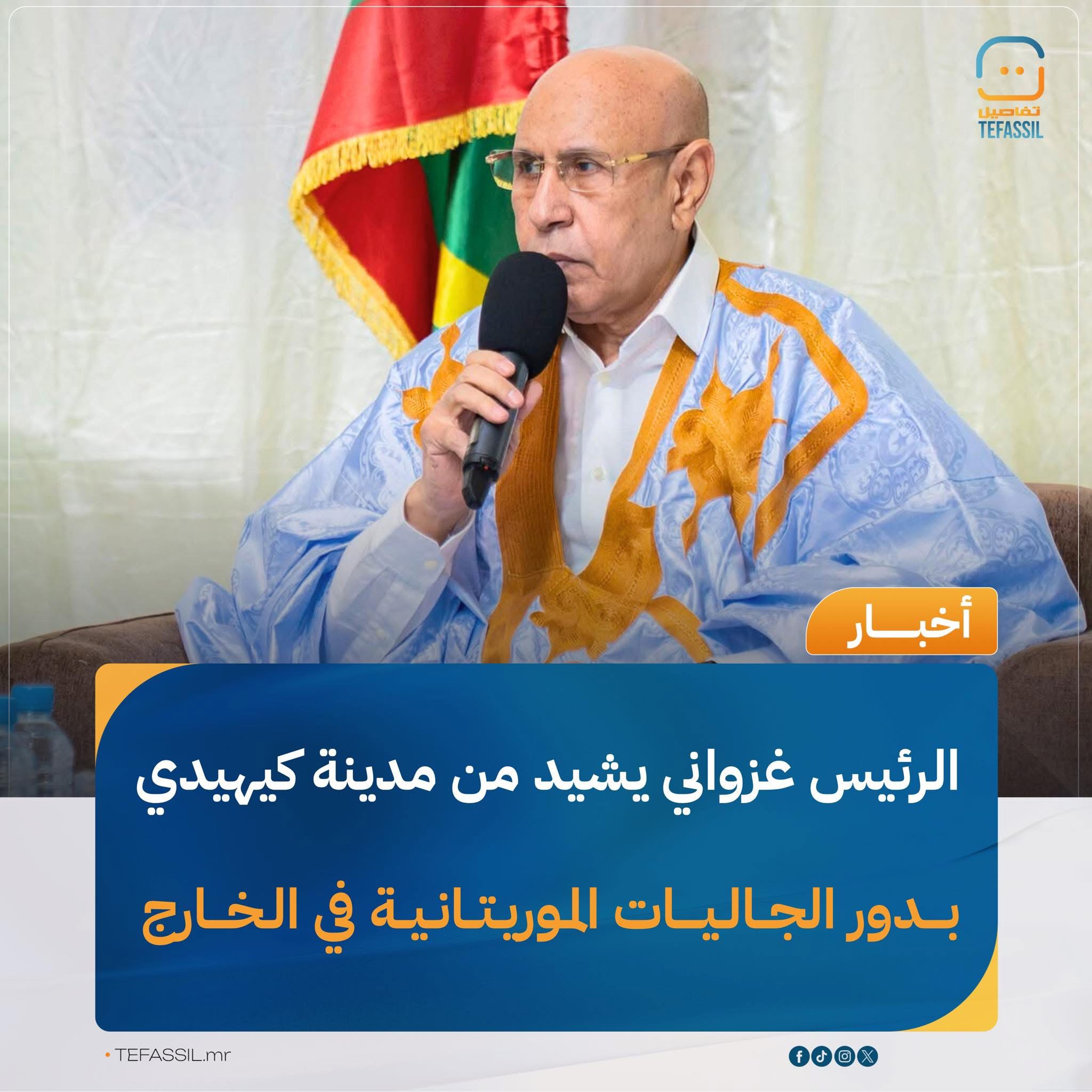 أشاد رئيس الجمهورية محمد ولد الشيخ الغزواني، بدور الجاليات الموريتانية في الخارج، منوها بما يقوم به أبناء موريتانيا في المهجر من جهود لتعزيز حضور بلدهم وتمثيله بصورة إيجابية في مختلف المحافل.