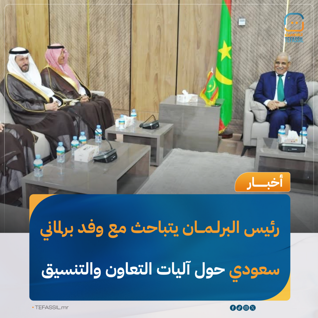 وبحث ولد مكت مع الوفد السعودي سبل تعزيز التعاون البرلماني الثنائي بين المؤسستين التشريعيتين، والبحث عن آليات عملية لتفعيل هذا التعاون، إضافة إلى التنسيق بشأن عدد من القضايا ذات الاهتمام المشترك.