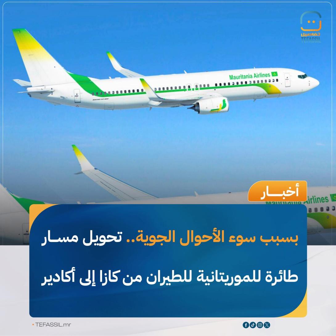 اضطرت طائرة تابعة لشركة الموريتانية للطيران، في اللحظات الأخيرة، إلى تحويل مسارها من مطار الدار البيضاء إلى مطار أكادير، بسبب سوء الأحوال الجوية.