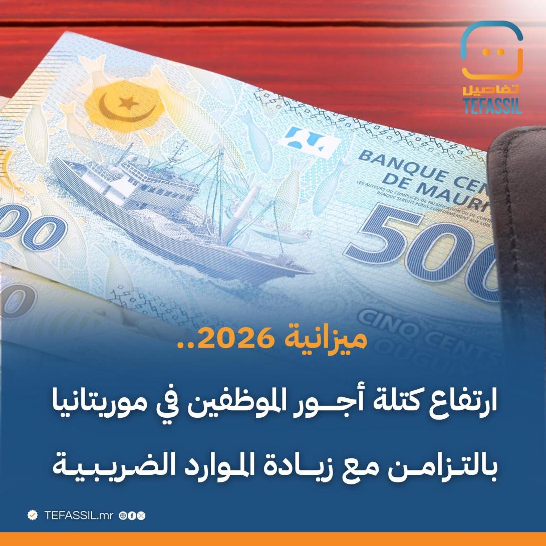 أظهرت معطيات الميزانية العامة للدولة لسنة 2026 ارتفاع كتلة أجور الموظفين إلى 315 مليار أوقية، مقابل 256 مليار أوقية في ميزانية سنة 2024، أي بزيادة تناهز 59 مليار أوقية خلال عامين.