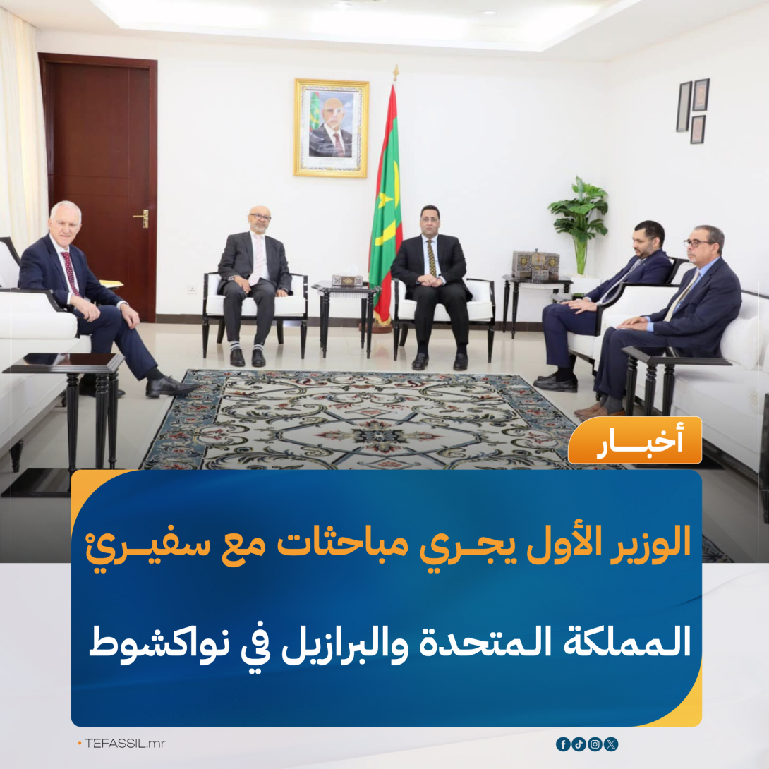 أجرى الوزير الأول المختار ولد اجاي، صباح اليوم الجمعة، مباحثات مع سفيري المملكة المتحدة والبرازيل المعتمدين لدى موريتانيا غاي هـاريسون، وإيفالدوا فريري.