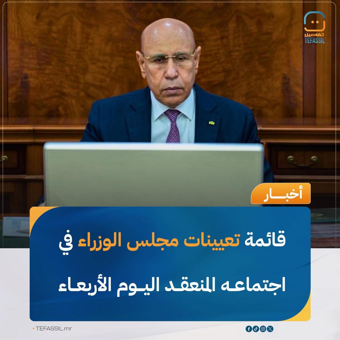 صادق مجلس الوزراء، خلال اجتماعه اليوم الأربعاء بالقصر الرئاسي في نواكشوط، على جملة من الإجراءات الخصوصية شملت تعيينات في عدة قطاعات حكومية ومؤسسات عمومية.