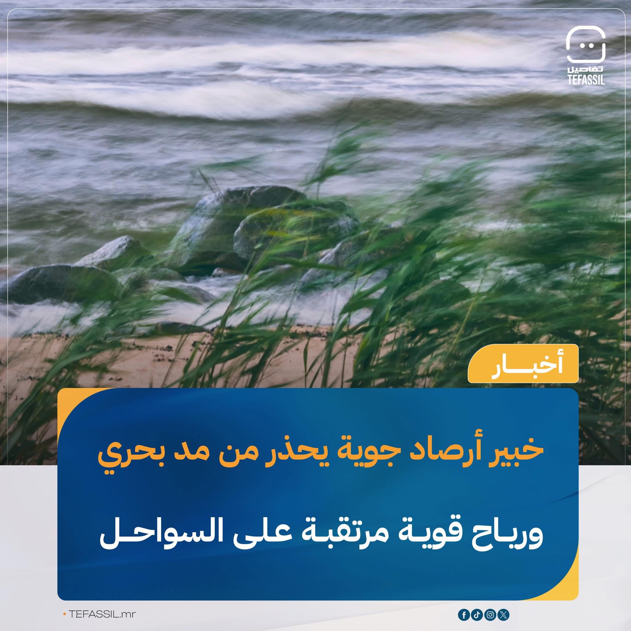 وأوضح كوناتي، في تنبيه نشره، أن هذه العاصفة يُرجح أن تتسبب في مدّ بحري معتبر يصل ليلة الخميس (مساء الأربعاء)، مصحوبا برياح قوية على السواحل، خاصة في مدينتي نواذيبو ونواكشوط.