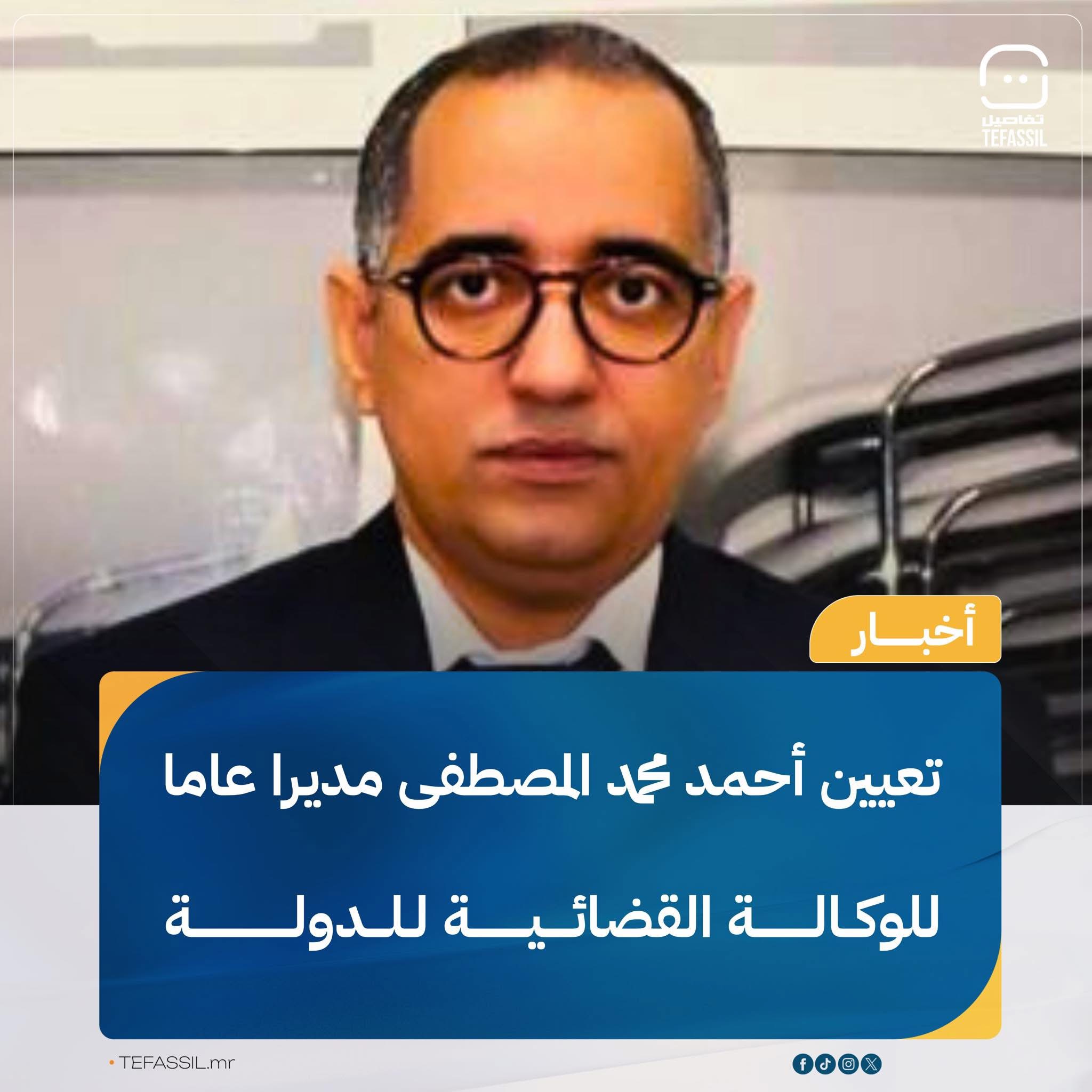 Feb 25 / التعليقات تعيين ولد المصطفى مديرا عاما للوكالة القضائية للدولة عينت الحكومة، خلال اجتماعها المنعقد اليوم، القاضي أحمد محمد المصطفى مديرا عاما للوكالة القضائية للدولة، وذلك ضمن جملة التعيينات التي أقرها مجلس الوزراء..#تفاصيل#موريتانيا أربعاء, 2026/02/25 - 15:41