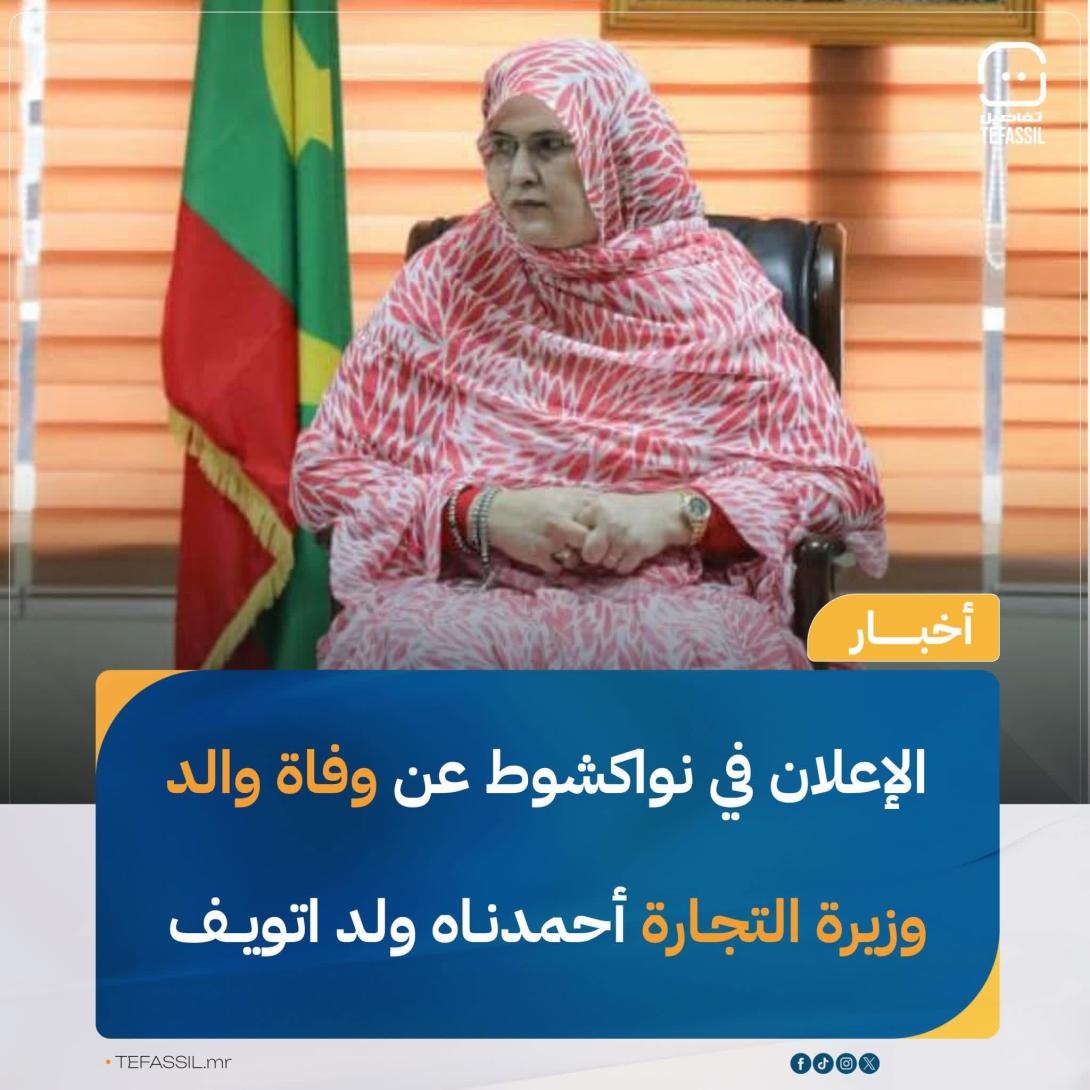 أُعلن مساء اليوم الجمعة في نواكشوط عن وفاة أحمدناه ولد اتويف، والد وزيرة التجارة والسياحة زينب بنت اتويف.