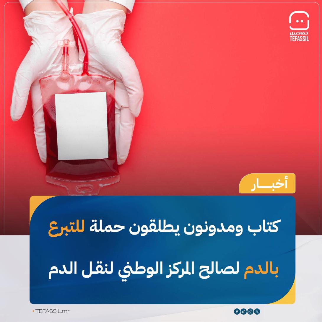 أطلق كتاب ومدونون نداء عاجلا للتبرع بالدم لصالح المركز الوطني لنقل الدم في نواكشوط، في ظل الحاجة المتزايدة إلى المتبرعين لتغطية احتياجات المرضى في المستشفيات.