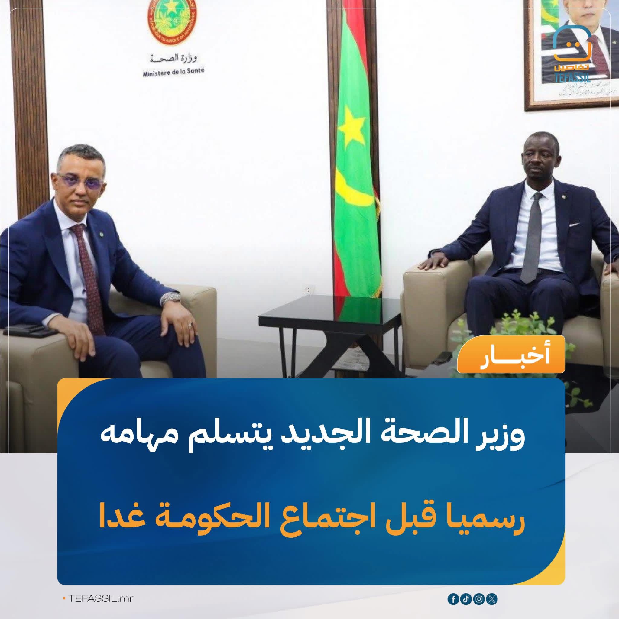 تسلم وزير الصحة، اتيام التجاني، مهامه رسميا، مساء اليوم، من سلفه محمد محمود ولد اعل محمود، وذلك خلال حفل جرى بمباني الوزارة في نواكشوط.