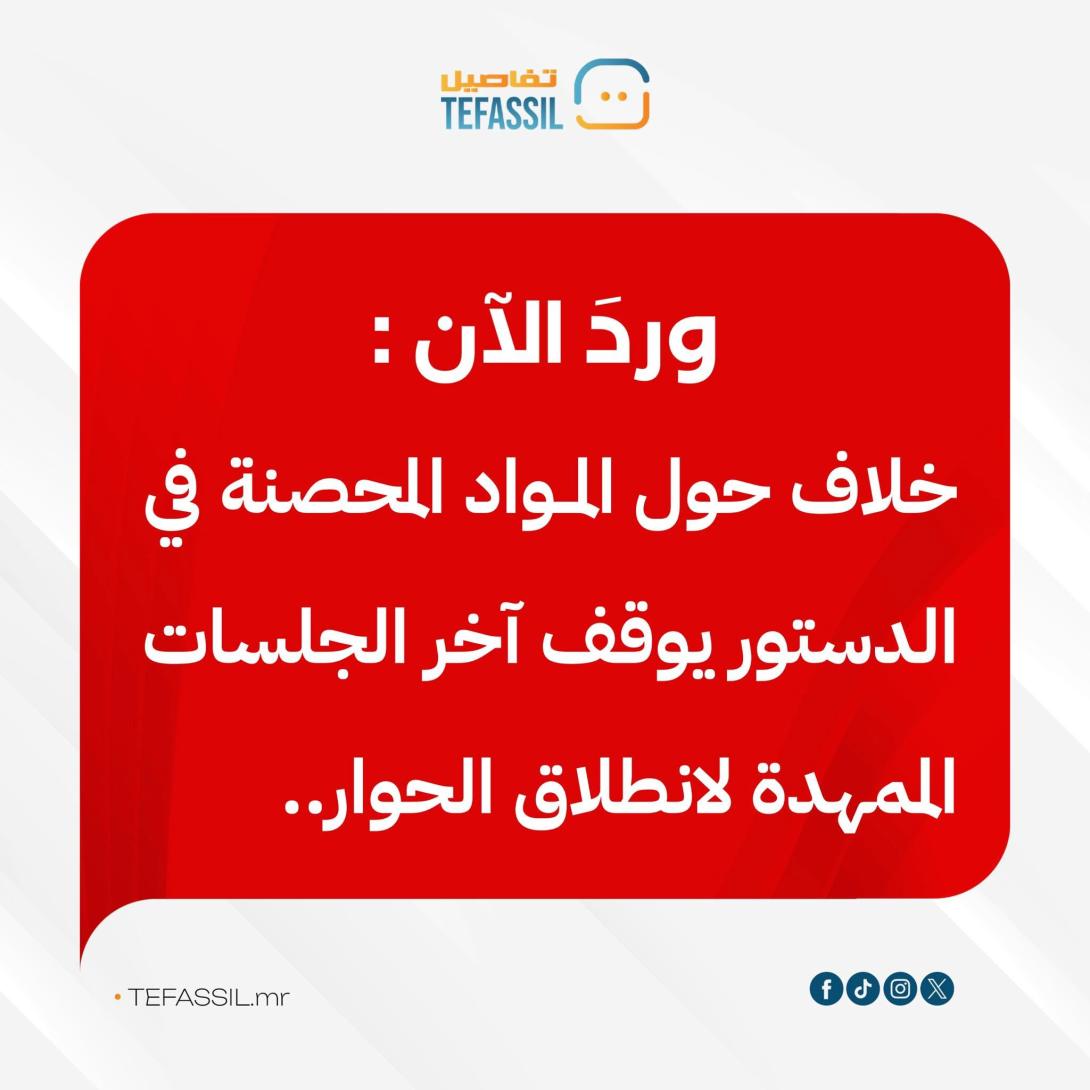 تسبب خلاف بين الأطراف السياسية حول إدراج المواد المحصنة في الدستور في تعليق آخر الجلسات الممهدة لانطلاق الحوار الوطني، التي انعقدت اليوم بقصر المؤتمرات القديم في نواكشوط.