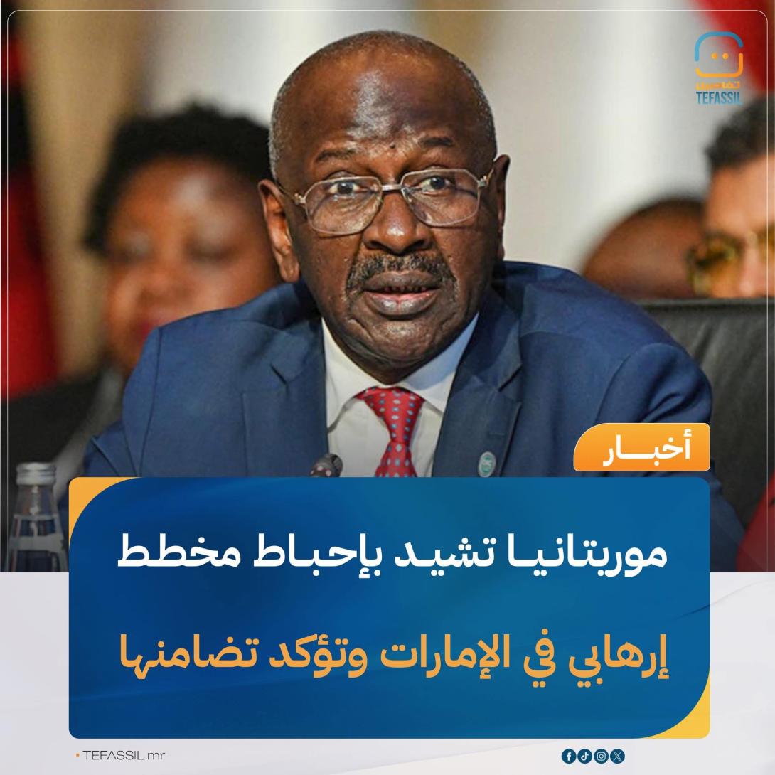 أعربت وزارة الشؤون الخارجية والتعاون الإفريقي والموريتانيين في الخارج عن إشادتها بالإجراءات الأمنية التي اتخذتها الإمارات العربية المتحدة، والتي أسفرت عن تفكيك تنظيم إرهابي والقبض على عناصره.