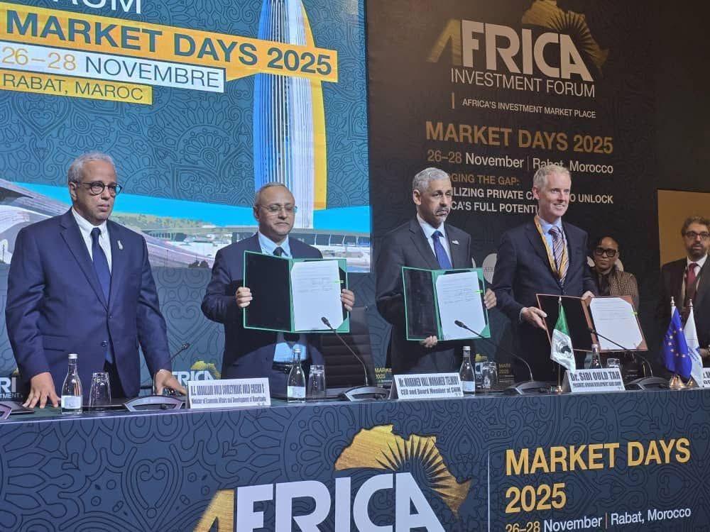 أشرف وزير الاقتصاد عبد الله ولد سليمان ولد الشيخ سيديا، على توقيع اتفاقية تمويل بين البنك الأفريقي للتنمية والبنك الأوروبي للاستثمار وشركة سنيم، وذلك على هامش منتدى الاستثمار الأفريقي 2025 في الرباط.