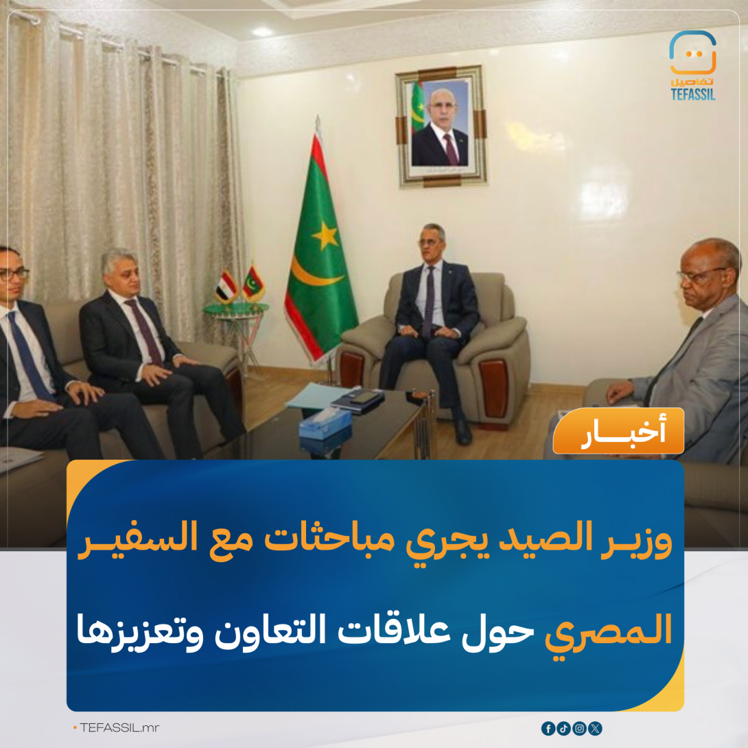 أجرى وزير الصيد المختار أحمد بوسيف، صباح اليوم الاثنين، مباحثات مع السفير المصري المعتمد لدى موريتانيا أحمد محمد عبد الحميد طايع.
