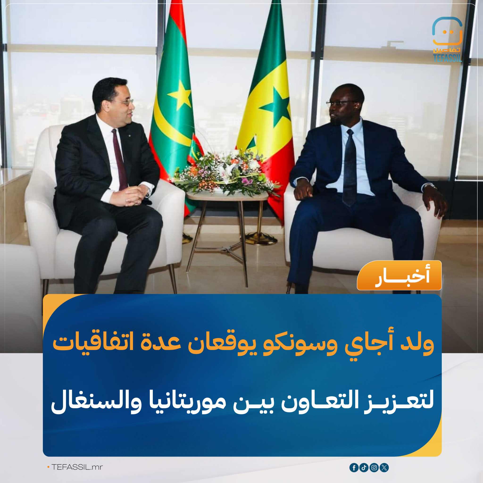 وجاءت هذه التوقيعات في إطار زيارة صداقة وعمل بدأها الوزير الأول ولد أجاي صباح اليوم، وتتواصل على مدى يومين لتعزيز التعاون الثنائي بين موريتانيا والسنغال.