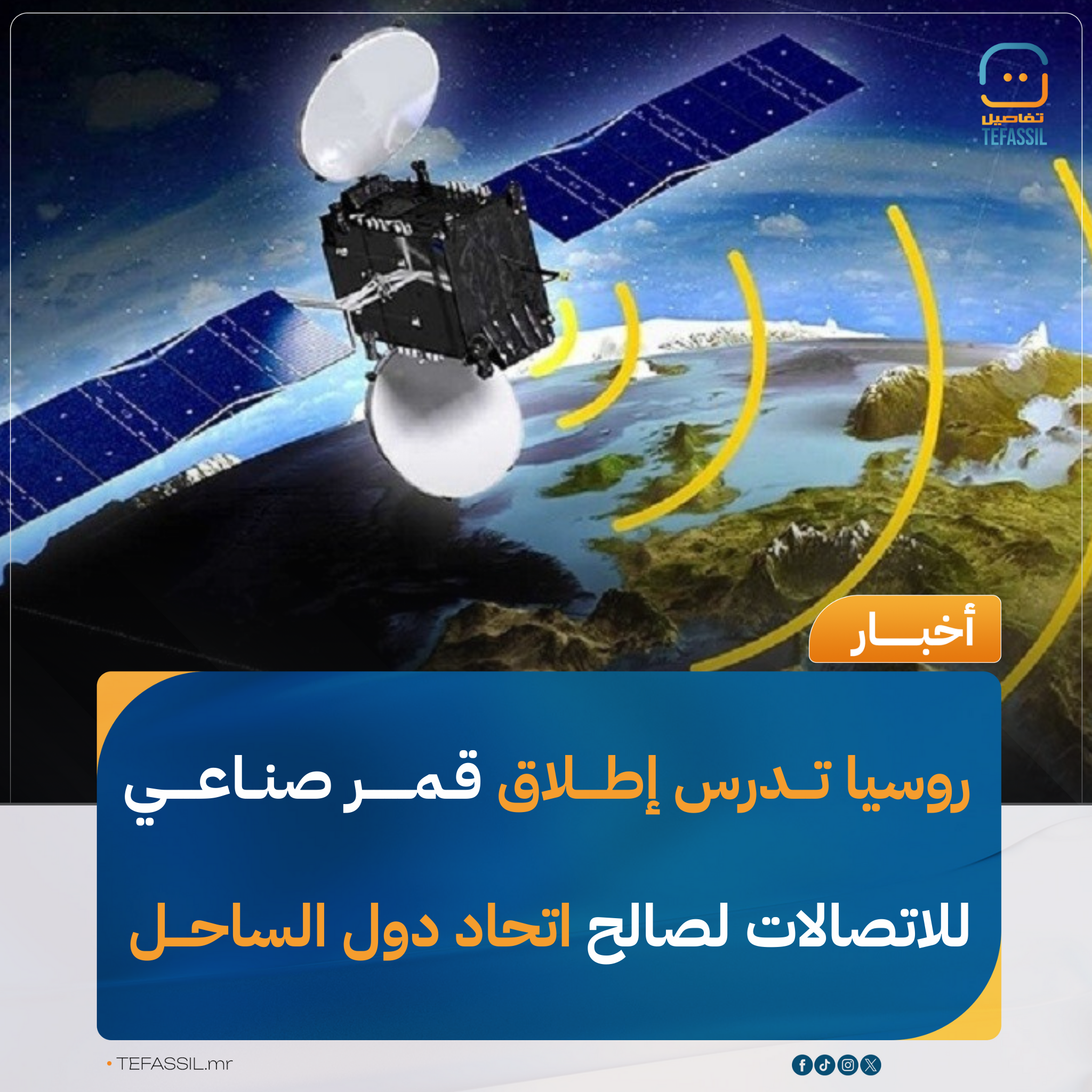 تدرس روسيا وبوركينا فاسو إمكانية توقيع اتفاقية لإطلاق قمر اتصالات روسي الصنع لصالح اتحاد دول الساحل الإفريقي، وفق ما أعلنته سفارة روسيا في بوركينا فاسو في قناتها على "تلغرام".