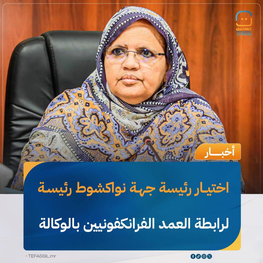 اختيرت رئيسة جهة نواكشوط، فاطمة بنت عبد المالك، لتولي رئاسة الرابطة الدولية للعمد الفرنكفونيين بالوكالة، وذلك في ختام أعمال الدورة الـ106 للمكتب التنفيذي للرابطة، المنعقدة يوم الثلاثاء 3 فبراير 2026.