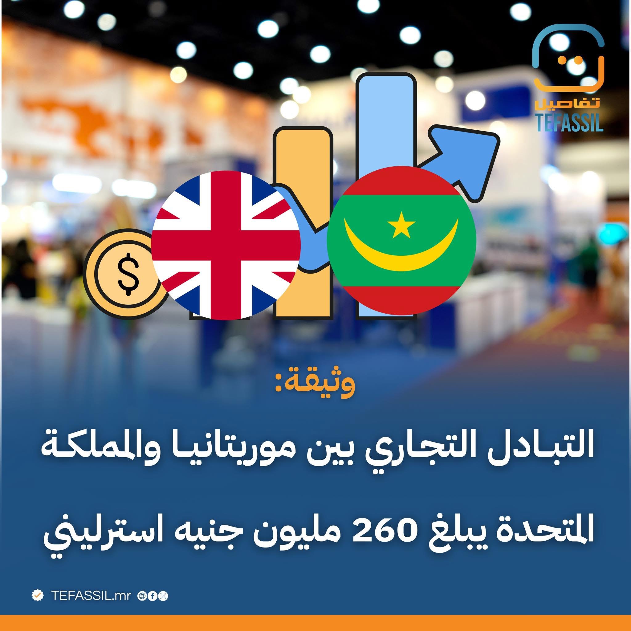 أظهرت ورقة معلومات رسمية صادرة عن وزارة الأعمال والتجارة البريطانية، أن حجم التبادل التجاري بين موريتانيا والمملكة المتحدة بلغ نحو 260 مليون جنيه إسترليني خلال الأشهر الأخيرة من سنة 2025.