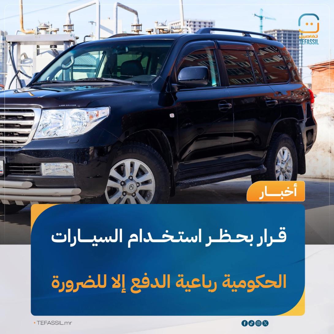 أقرت السلطات العمومية في موريتانيا، حظر استخدام السيارات الحكومية رباعية الدفع، مع قصر استعمالها على الحالات الضرورية فقط، في إطار إجراءات ترشيد النفقات وتعزيز ضبط استخدام الموارد العمومية.