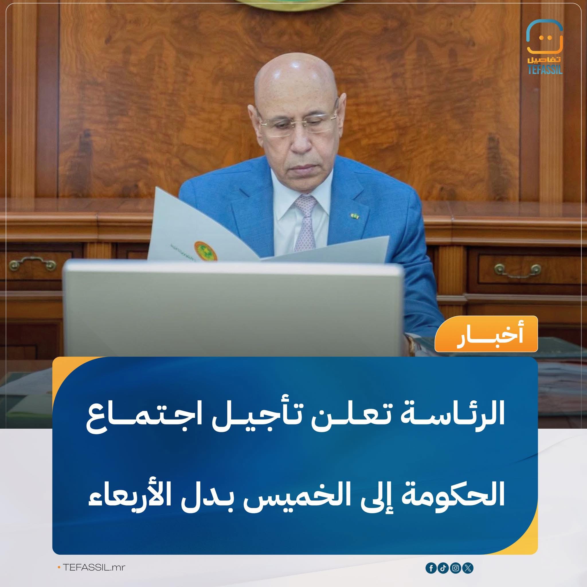تعقد الحكومة اجتماعها الأسبوعي، غدا الأربعاء، في القصر الرئاسي بنواكشوط، تحت رئاسة رئيس الجمهورية محمد ولد الشيخ الغزواني.