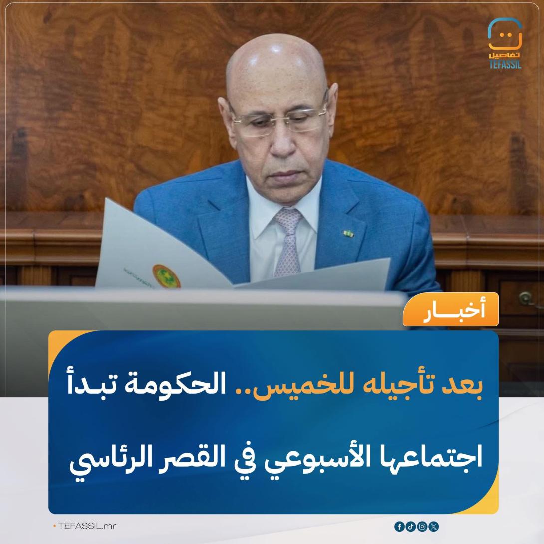 بدأت الحكومة، اليوم الخميس، اجتماعها الأسبوعي في القصر الرئاسي بنواكشوط، تحت رئاسة رئيس الجمهورية محمد ولد الشيخ الغزواني.